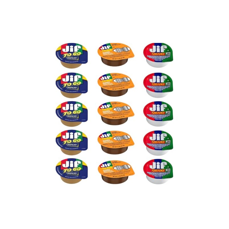 Enjoy versatile snacking with this Peanut Butter To-Go Cups Variety Pack (15 Pack), featuring Creamy, Chocolate, and Crunchy flavors in convenient single-serve cups. Each portioned cup is perfect for spreading, dipping, or enjoying straight from the pack, making it a great choice for school lunches, office snacks, travel, or quick energy on busy days. Pair with fruit, crackers, or toast for a satisfying snack that delivers rich flavor and a source of protein. These portable cups require no refrigeration and have a long shelf life, making them easy to store in your pantry, lunchbox, or backpack. Whether you prefer smooth, chocolatey sweetness or a crunchy bite, this variety pack offers flavor, convenience, and ready-to-enjoy peanut butter in every cup