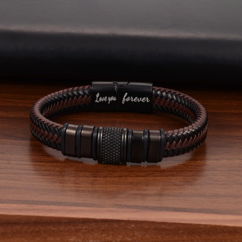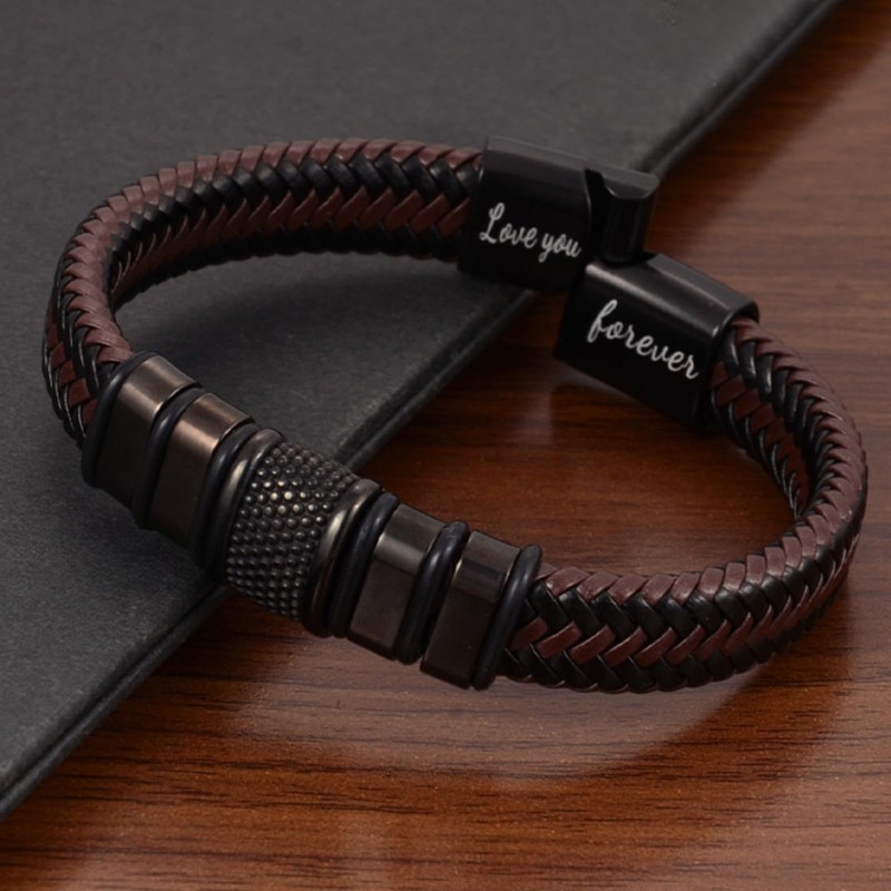 To My Son Bracelet From Mom Braided Leather Men's Bracelet with 'Love You Forever' Engraved Birthday Inspirational Gifts for Son