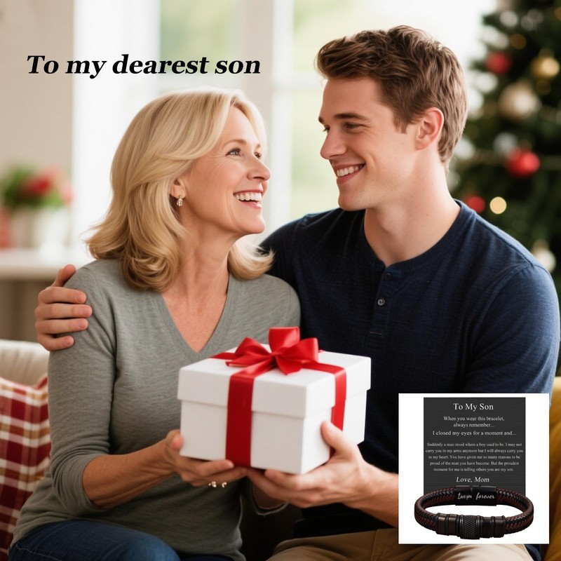 - 【TO MY SON BRACELET FROM MOM】Leather bracelets for son are made of genuine leather with love you forever engraved.Get the bracelets as I love you gifts for him, inspirational bracelets for son.