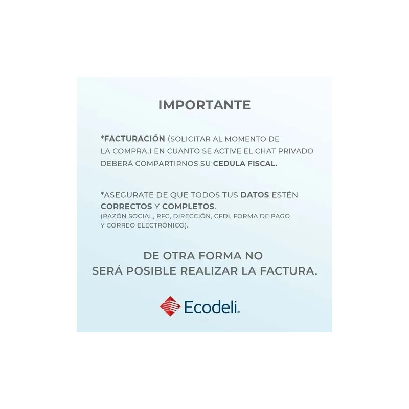 - En cuanto se active el chat privado con la compra deberá compartirnos su CEDULA FISCAL en PDF o foto.