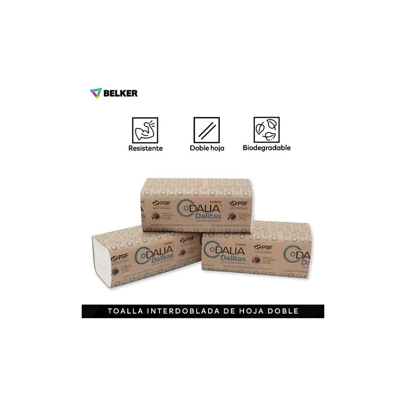 Descripción Limpia: Paquete de 4 piezas de Toalla interdoblada Dalitas caja con 20 paquetes de 100 piezas / 2000 piezas hoja doble.