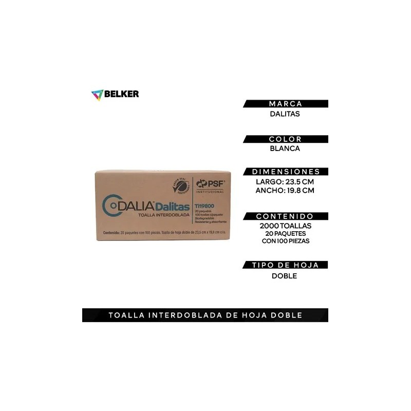 Toalla Interdoblada Dalitas Con 20 Pqt De 100 C/u 4 Cajas