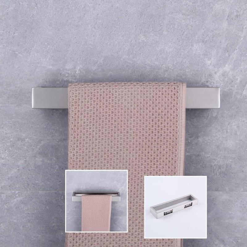 Toallero de baño SUS304 de acero inoxidable con anilla para toalla, para baño, lavatorio, montaje en pared, estilo contemporáneo, acabado cepillado, Cepillado, 1