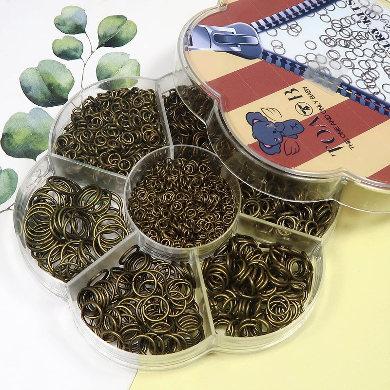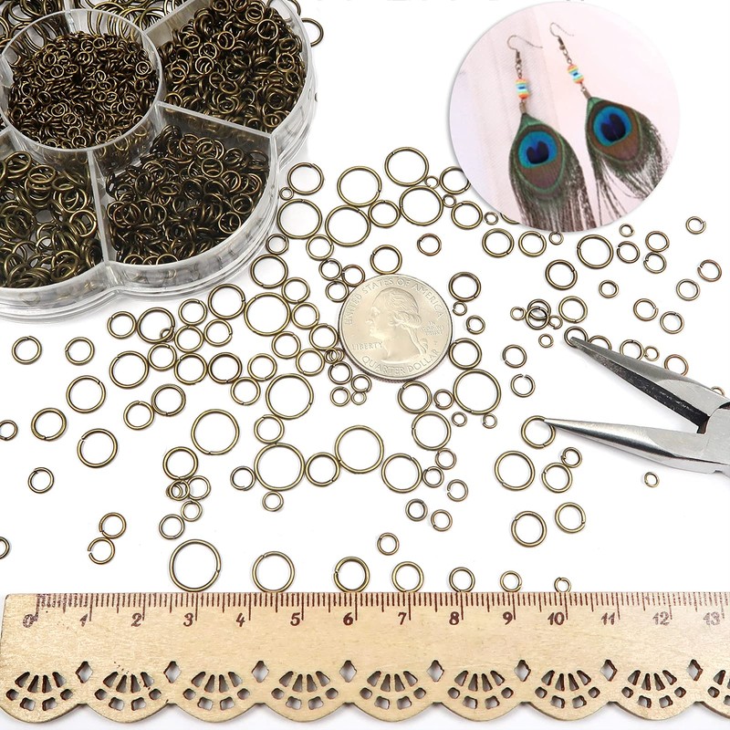 Toaob 2300 Pieces Old Bronze Jump Rings Split Rings 3 mm to 10 mm Metal Chain Rings Jump Rings with Opener for Necklaces Bracelet DIY Jewellery Making