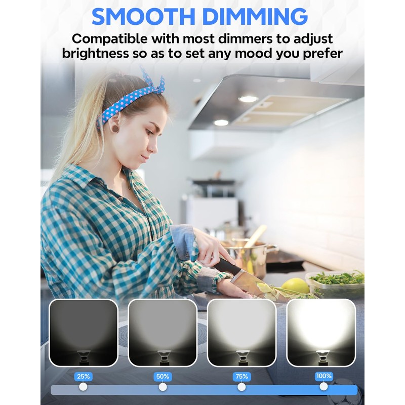 - Adjustable brightness: GU10 6W dimmable LED appliance bulbs are silky-smooth dimmable, so you can easily adjust the brightness to suit any mood or activity. Whether you're aiming to create a vibrant workspace or a calm, focused environment, these bulbs respond to your needs, providing the perfect balance of daylight-like illumination for any scenario.