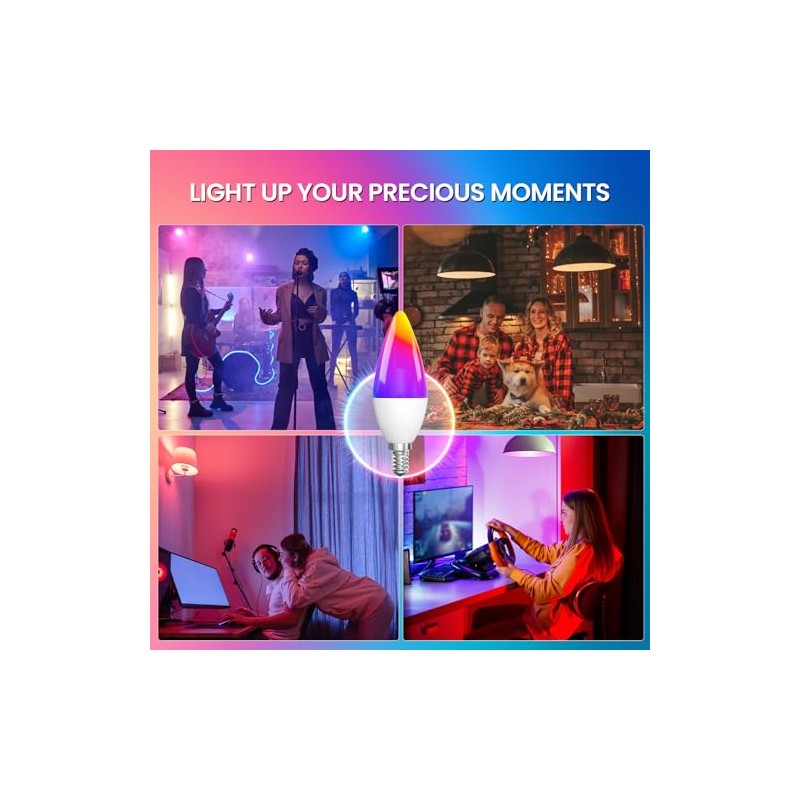 • Memory & Timer Function- The E14 LED RGB light bulb will back to the mode with your last setting when you turn on again.This RGB Bulb have 4hrs and 8hrs timer setting. It will bring great convenience to your life.