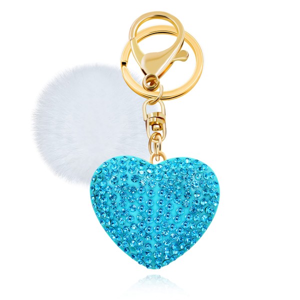 Tobestu Sparkly Rhinestone Heart Keychain Car Keyrings Pompom Ball Charms Accessories for Handbag Wallet Purse Y2273 (Blue)