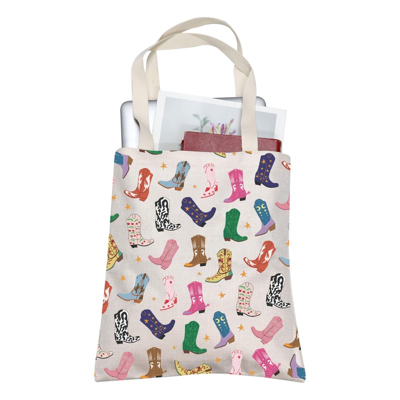 TOBGBE Cowgirl Western Boots Inspired Canvas Shopping Bag Country Girl Gifts Western Stuff Country Concert Gifts (Boots Tote)