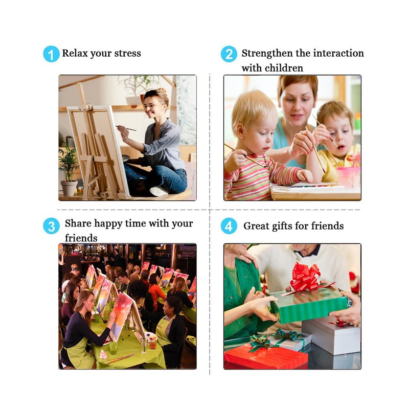 2. DIY Your Own Colors- The paint by number canvas is ideal for you to be concentrated on paintings for hours, release the tension of a hard day and enjoy a relaxing activity.