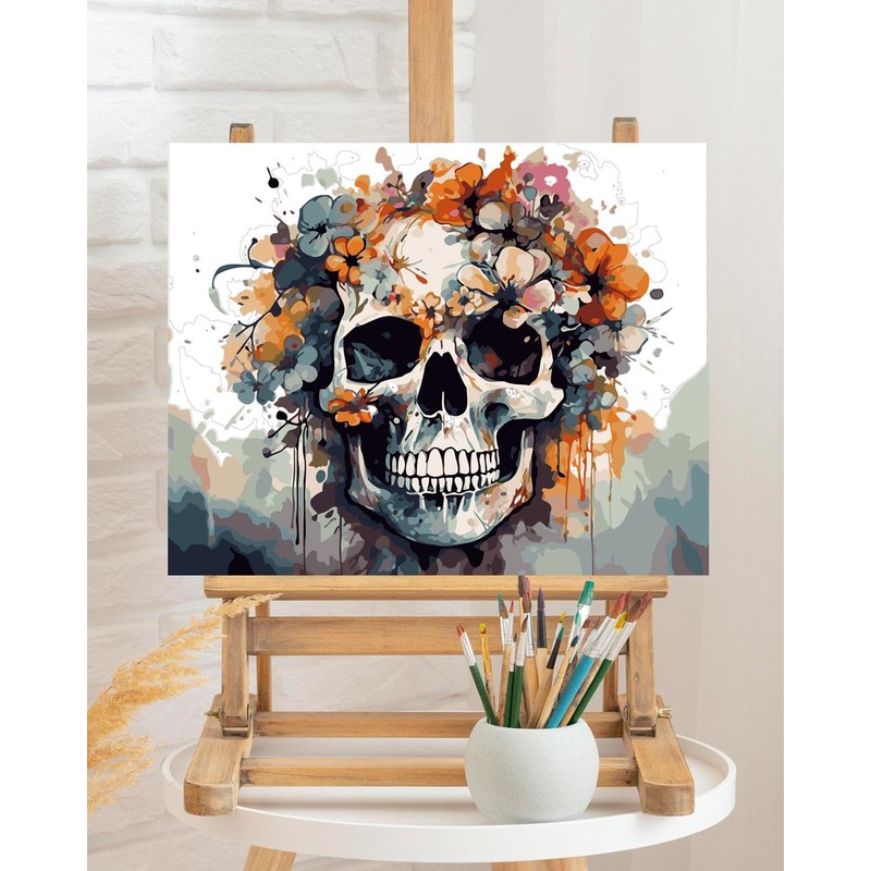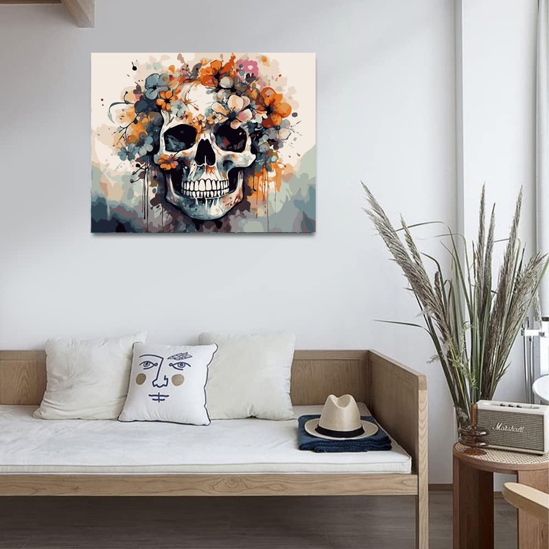 TOCARE Skull Paint by Numbers kit for Adults Skull with Floral, Skull Paint by Number Canvas, Acrylic Adult Paint by Number Kits Flower Skull 16x20inch