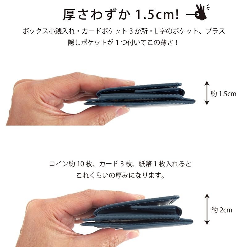 - Material: Cowhide leather (Tochigi leather); Size (W x H x D): 3.9 x 3.1 x 0.6 inches (10 x 8 x 1.5 cm); Specifications: Slit pocket (bill) x 1, coin purse x 1, card pocket x 3, pocket x 1