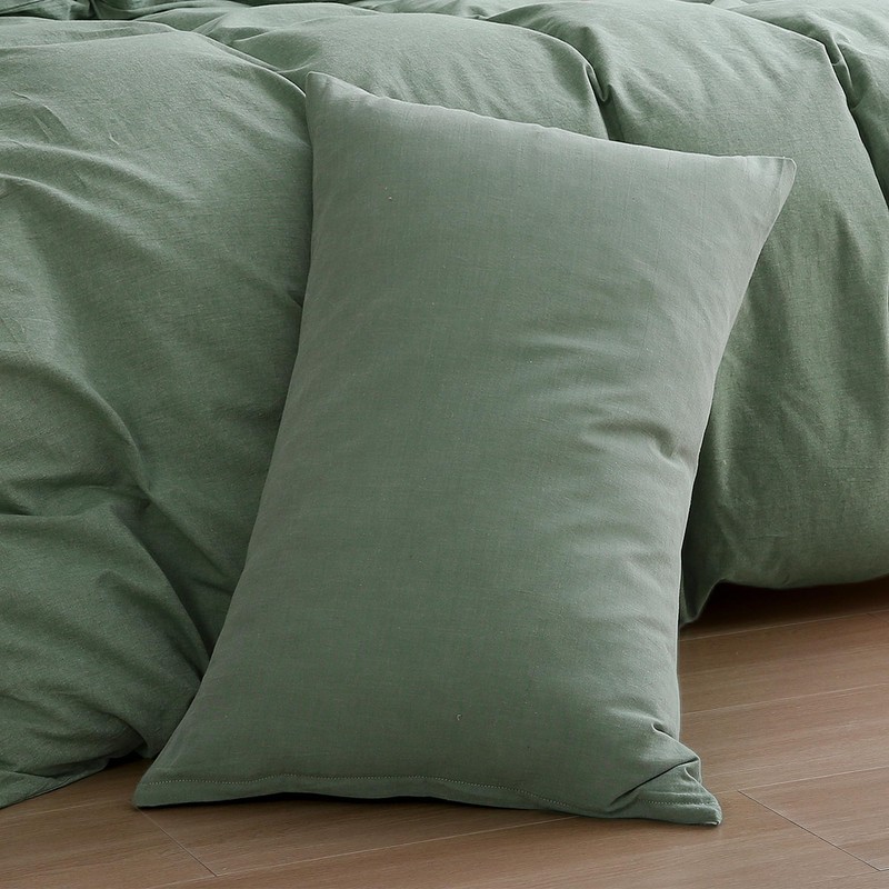 - Natural design - Thanks to the stonewash process, the green cushion covers get a linen look that gives them a natural vintage look and makes them a good choice for both bed and home decoration. The environmentally friendly and harmless dyeing process makes the plain cushion covers less prone to fading while being gentle on people with sensitive skin.