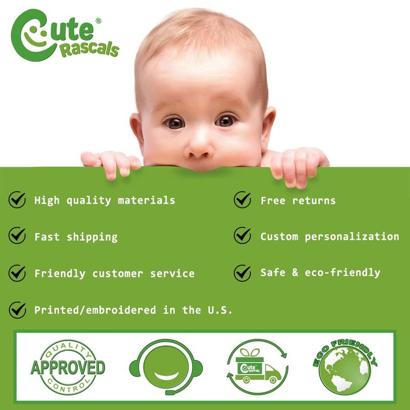 - Unique Designs and Fun Graphics: We put a lot of thought and time in the design of our baby stuff. We are proud to offer you the best selection of baby items, as well as the best variety of animals and farm graphic designs.