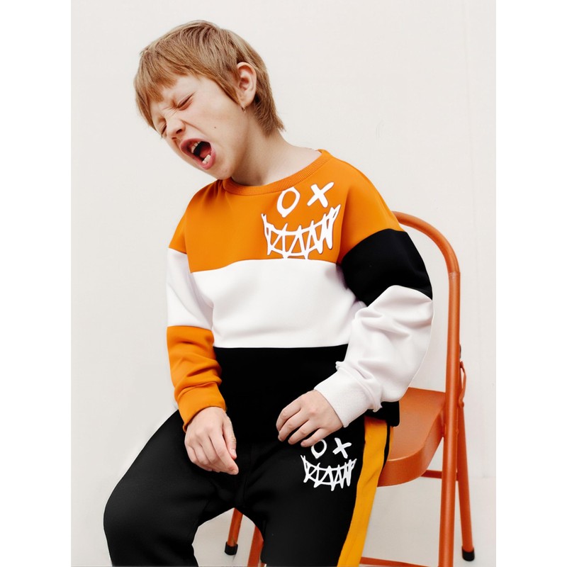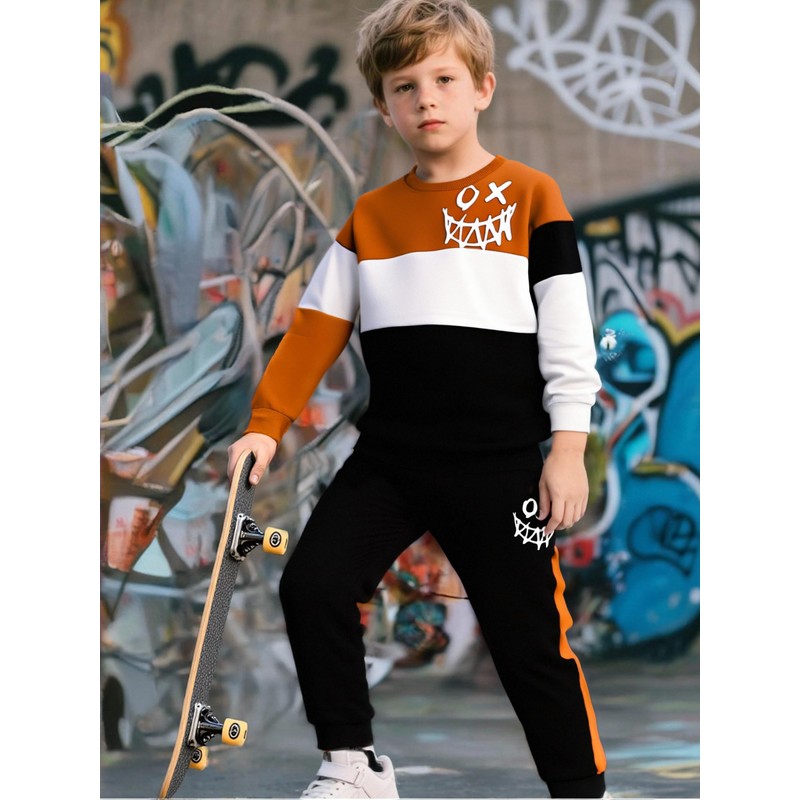 - Cute Boys Clothing: Two-colour or multi-colour patchwork clothing boys autumn set with cute cartoon design, colour blocking trousers, very fashionable 2-piece set, autumn and winter boys clothing