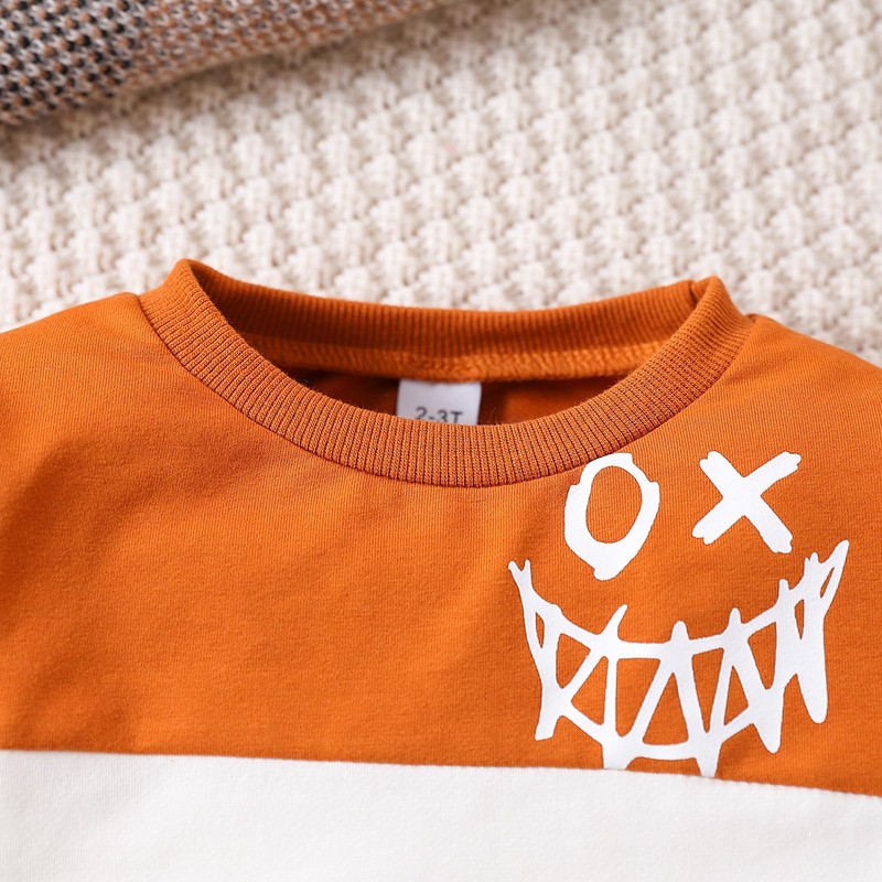 Toddler Baby Boy Clothes Cartoon Face Print Colour Blocking Sweatshirt + Sweatpants 2PC Fall Winter Outfits Set(7-8T)