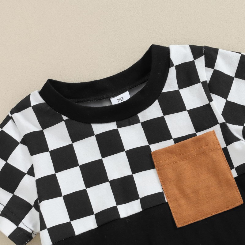 - DESIGNS: Checkered baby clothes,Baby boy summer clothes shorts set,casual summer baby boy clothes ,checkerboard, patchwork, chest with a pocket, short sleeve, crew neck T-shirts, matching with elastic waist shorts, bright colors make the baby look cute and lovely.