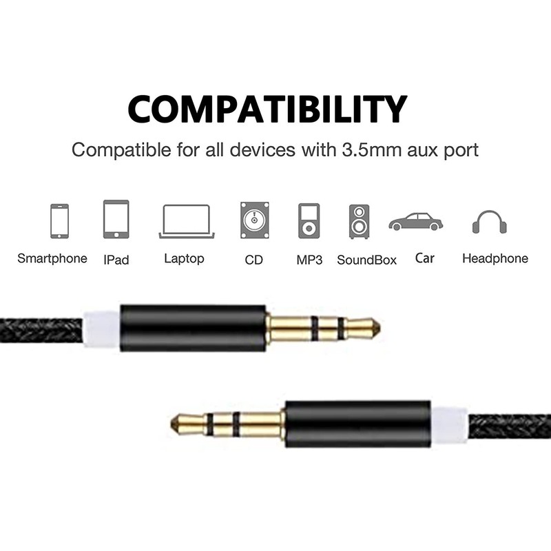- Universal Compatibility: this 3.5mm audio cable works with any device equipped with standard 3.5mm audio jack or AUX-in port. Such as Headphones, Car Home Stereos, Speakers, Tablets, Echo Smartphones, MP3 Players and More.