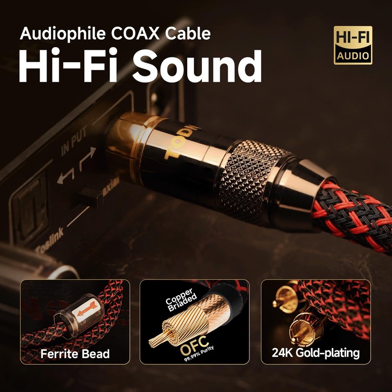 - Powerful Bass: TODN R-Series HiFi digital coaxial cable feature an OFC conductor that delivers strong bass and rich details, like heavy bass in electronic music. After 48 hours of burn-in, digital coaxial cable reaches its full potential, delivering a richly detailed soundstage. Ideal for audiophiles who like powerful music, such as electro, rock and more. (Burn-in: the process of conditioning audio cable through extended electrical operation to 'activate' their full performance potential)