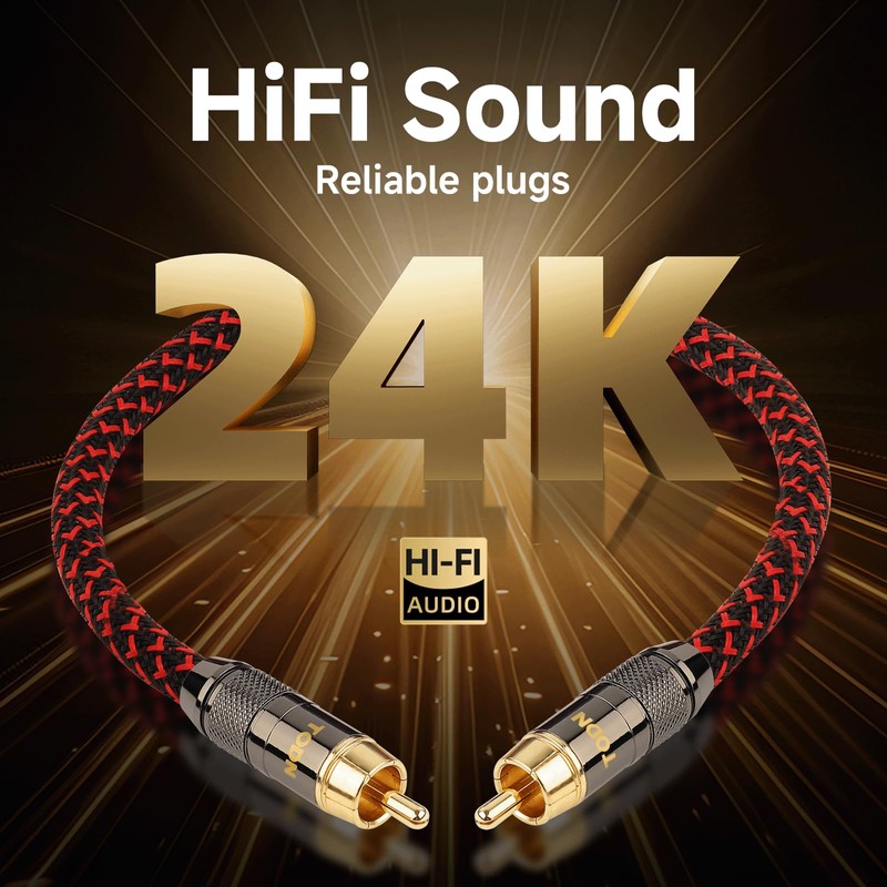- Plug & Play: This high-quality digital audio coaxial cable (RCA male to male) features corrosion-resistant 5μ 24K gold - plated pure copper plugs for reliable connections, minimizing signal loss. This cable also features a pure copper shell for enhanced conductivity. It is perfect for hi-end equipment such as subwoofers and amplifiers that require stable conductivity.