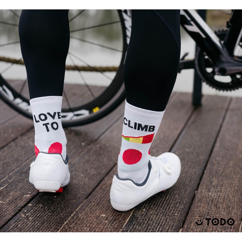- TODO Active Cycling Pro – Breathable cycling socks for men and women. Crew length, good fit, thin cycling socks for blister-free cycling. Motif polka dots bicycle socks with inscription – Love to Climb.