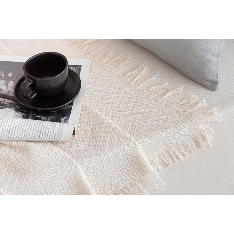 Todocama Multipurpose Bedspread Bedspread Throw for Bed Sofa Throw Jarapas Herringbone (125 x 180 cm, Cream)