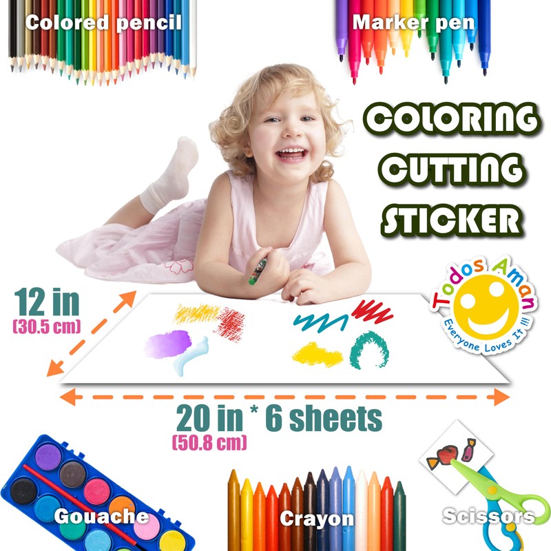 - 🖍【Full Backing Re-stickable Adhesive】Easy to fold, tear and share. No residue would be left on whatever the surface stuck. No more mess occurs from kids’ coloring on the wall. No tape is required to keep the paper staying in place. The full sheet of the finished artwork can be stuck and displayed on the wall, refrigerator, windows, cabinets etc., or transformed to become a sticker by cutting off your favorite figures.