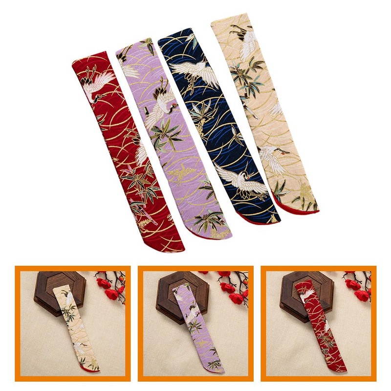 Tofficu 4pcs Chinese Style Folding Hand Fan Pouch Set, Handheld Fan Sleeve Cover, Chinese Hand Fan Bag, Silk Fabric & Bamboo Handheld Fan Storage Bags for Easy Carrying, Ideal for Festivals