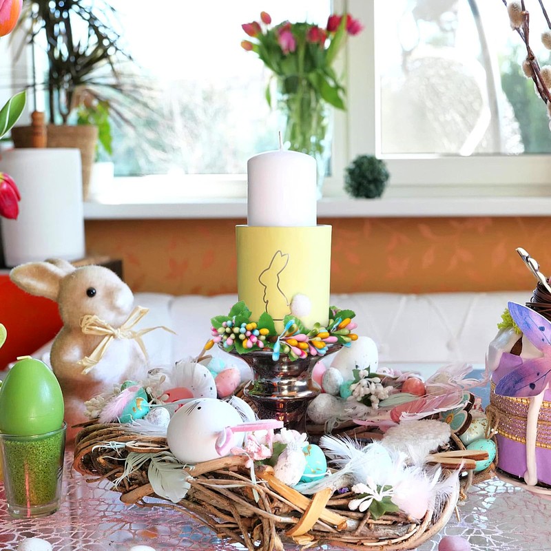 - Easter Color Pip Candle Ring, Candle ring is securely attached to the bottom of the and is made of a natural twig base