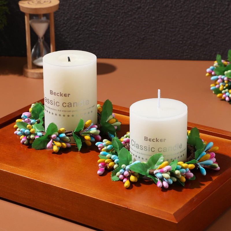 Coloful Artificial Berry Candle Ring Glass Tealight Candle Holder for Spring Easter Home Party Table Centerpiece Decor