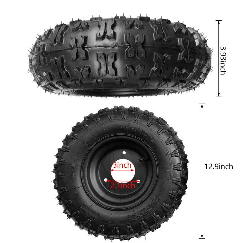 • 【Tubeless Wheel Size】:Diameter-13.0 inch , Width- 3.93 inch , come with 4.1-6 tire, 6" rim, and inner tube.