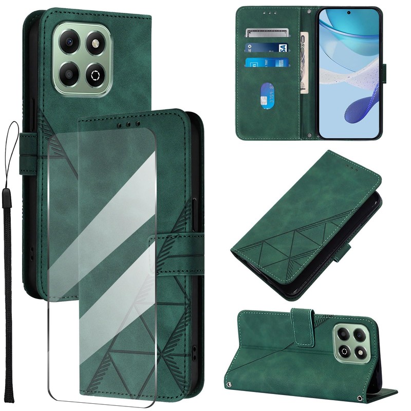 Togestar for Honor X6B / X6A Case with Screen Protector, Flip Wallet Folding Cover PU Leather Purse Case Card Slots Kickstand Magnetic Closure Full Protection Shockproof,Green