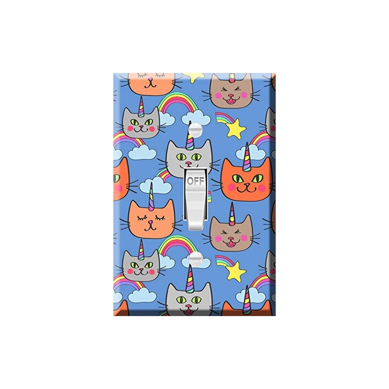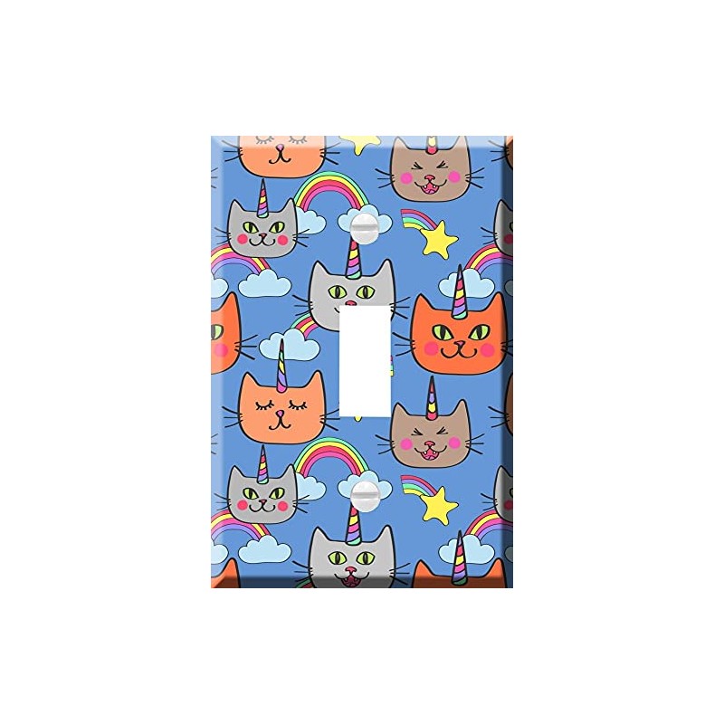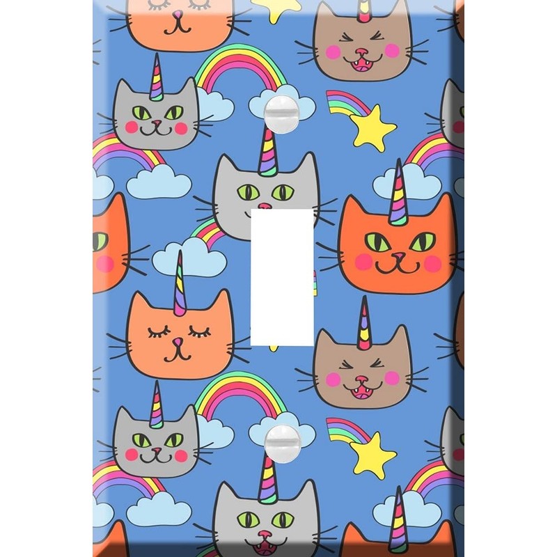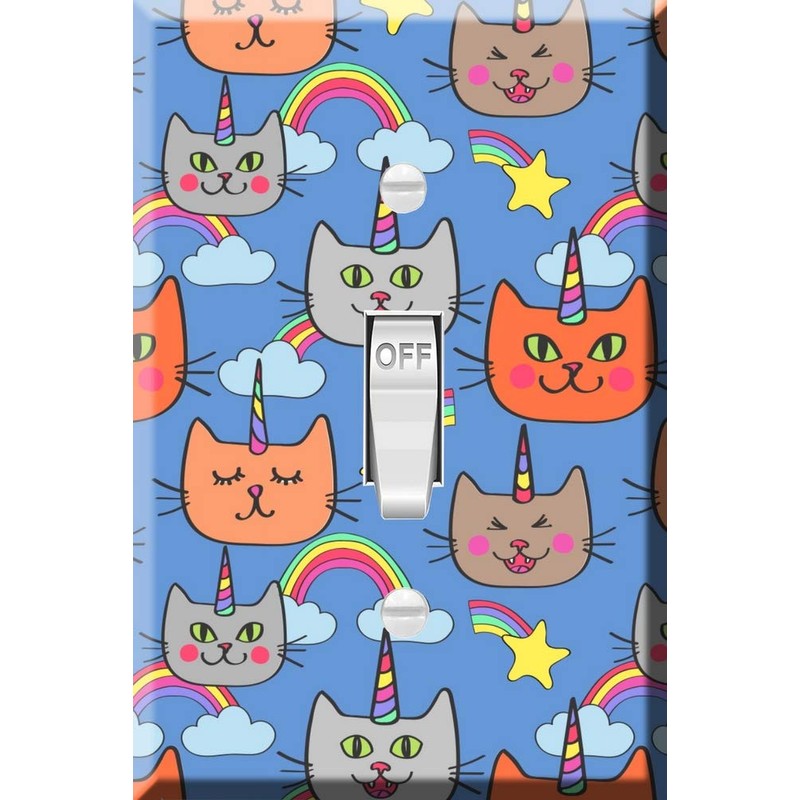 Toggle Wallplate, Single Light Switch Cover Plate - Cat Unicorn Rainbow Pattern