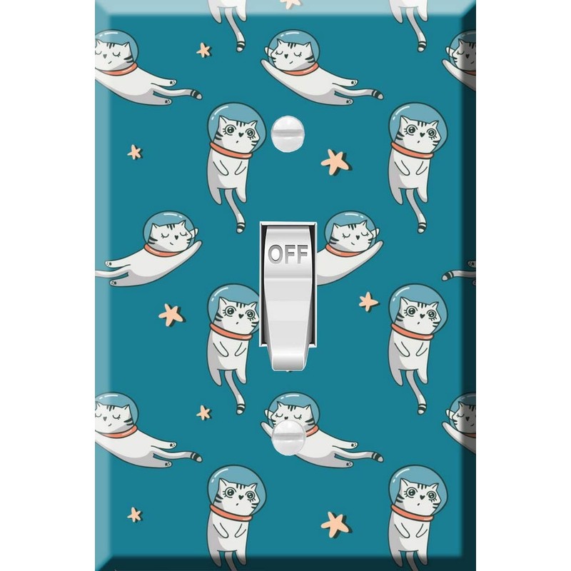Toggle Wallplate, Single Light Switch Cover Plate - Space Cats Astronaut