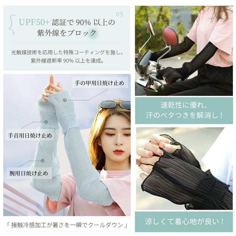 [Tohaojay Zoner] アームカバー uvカット 腕カバー アームスリーブ 日焼け防止 紫外線対策 透かしレース ギャザー ストレッチ フリル 通気性 アイスシルク 冷感 おしゃれ 通勤 エレガント 可愛い 春 夏
