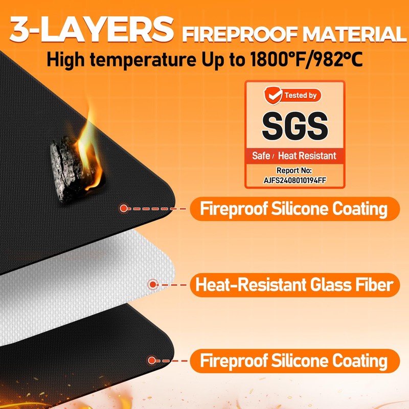 • Thin Fireplace MatOur ultra-thin (1mm) fireproof mat for fireplace provides exceptional protection against charcoal spills and heat damage. Despite its lightweight, compact design for easy storage and cleaning, it delivers superior fire resistance to safeguard your floors