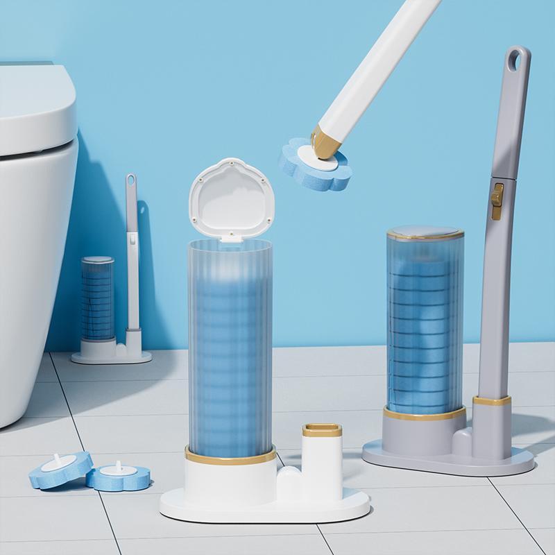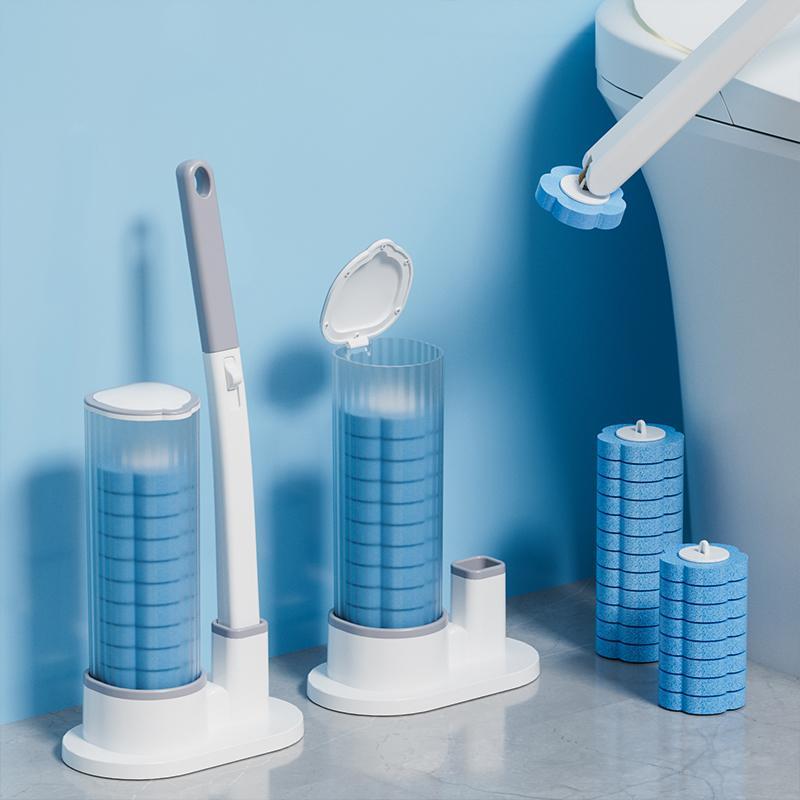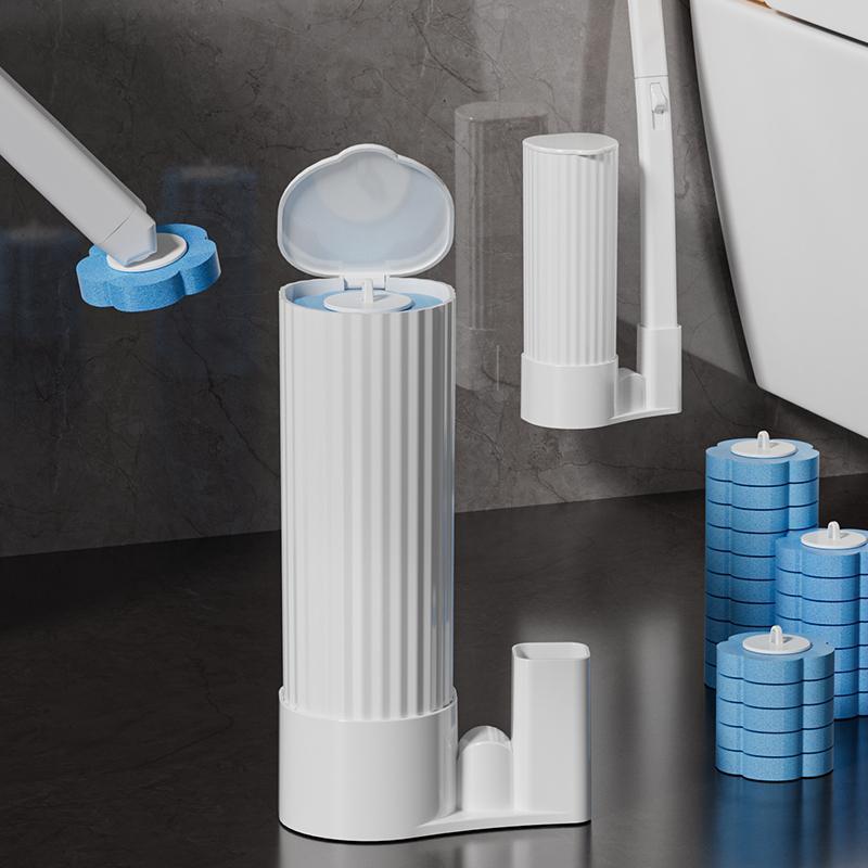 Toilet Brush Set, 1 Set Including 1 Count Long Handle Toilet Brush & 24pcs Disposable Replacement Brush Head, Bathroom Cleaning Tool - Color: Cloud White, Specification: with 24pcs brush heads