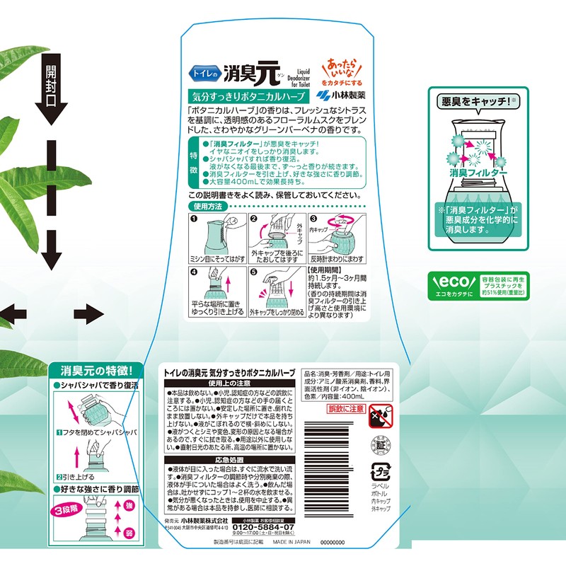 Toilet Deodorizer, Botanical Herb, Air Freshener, For Toilet, 13.5 fl oz (400 ml)