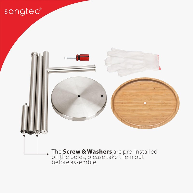 - Free Standing Design Adds Elegance to Your Space. No need to drilling, no damage to your wall, easy assemble, the free standing toilet paper roil holder with modern natural marble base and brushed gold metal rod can bring additional deco to your bathroom.