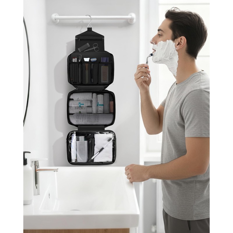 Maliton Toiletry Bag for Men & Women Travel Toiletry Bag Hanging Toiletry Bag Hygiene Organizer with 4 Compartments Waterproof Bathroom Shower Bag Large Toiletries Travel Bag(Black)