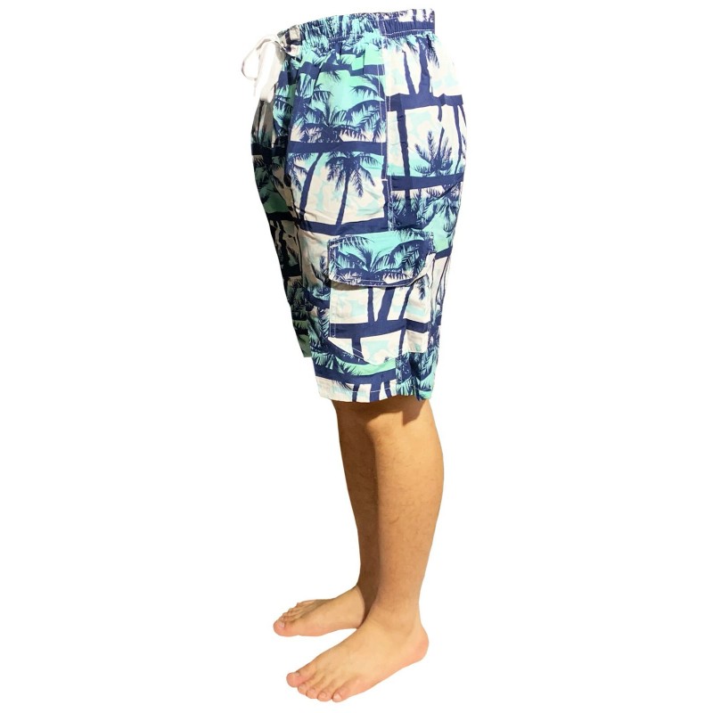 Toison Mens Board Surf Swimming Trunks With Mesh Line White Blue Base Tree L 28"-32"