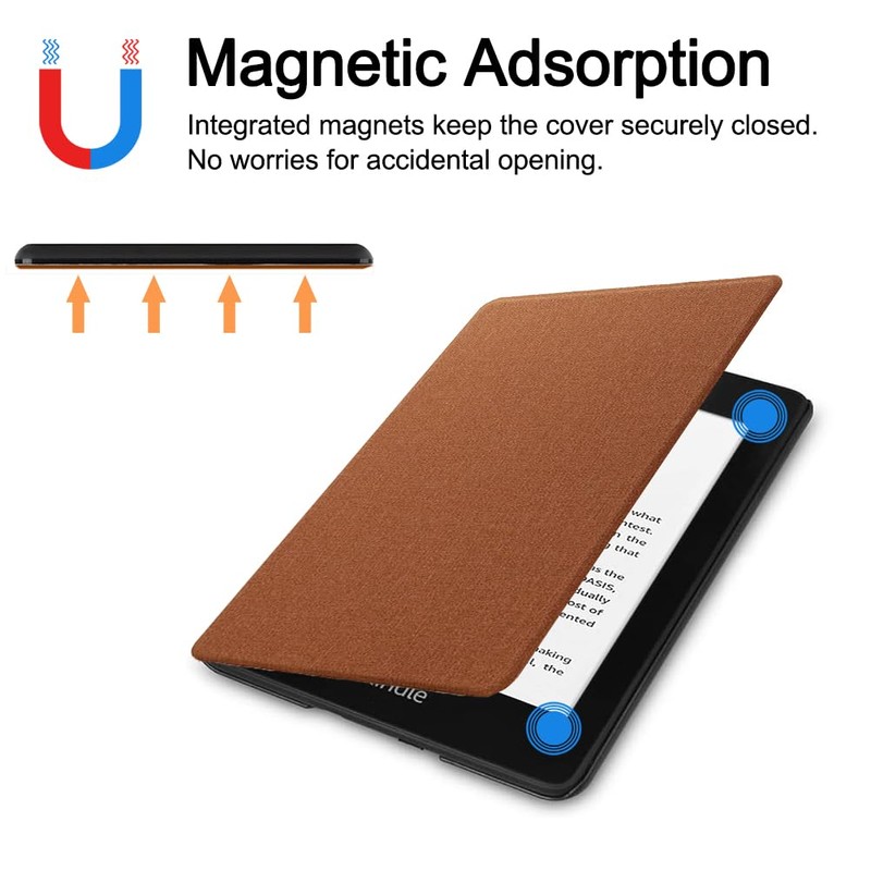 - Auto Wake/Sleep: The magnetic design helps the e-reader cover close securely. Automatically wakes or puts your device to sleep when the lid is opened and closed. Protects and extends battery life, saving power for longer reading time.