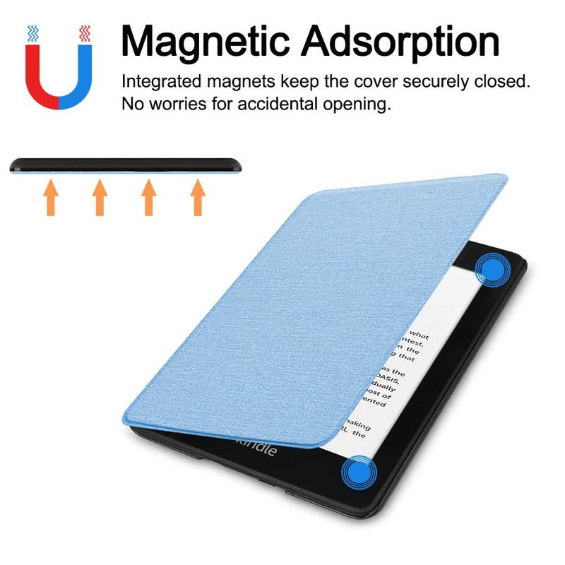 - Auto Wake/Sleep: The magnetic design helps the e-reader cover close securely. Automatically wakes or puts your device to sleep when the lid is opened and closed. Protects and extends battery life, saving power for longer reading time.