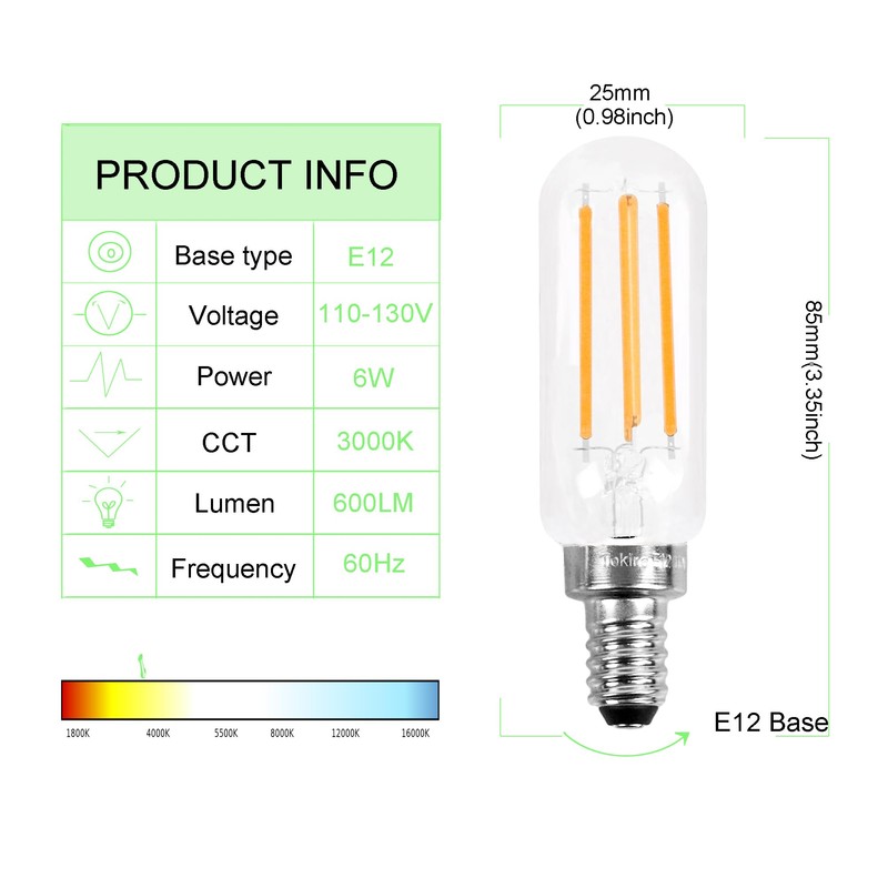 Tokira Retro LED Edison Bulb, E12 6W, Equivalent to 40W, 3000K 600 Lumens, Dimmable, Filament Bulb, High Brightness Warm White, Transparent Glass, 12 Sets