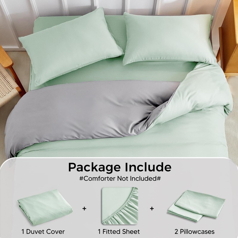 • 4-PIECE BEDDING SET WITH FITTED SHEET - 1x duvet cover 230x220cm + 2x matching envelope pillowcases + extra 1x fitted sheet 150x200 cm with 40 cm deep pocket, are included in tokokimo 4pcs king size duvet cover sets sage green