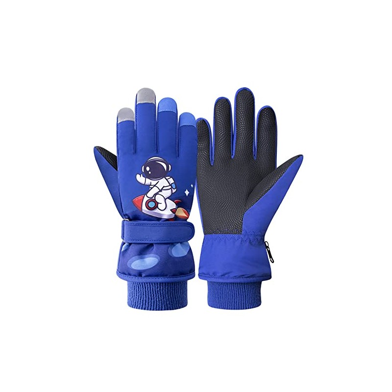 TOKYMOON Children's Ski Gloves, Snowboard Gloves, Snow Gloves, Waterproof and Windproof Winter Gloves, Non-Slip Plush Lined, Warm Gloves for Girls, Boys, Rocket, S (4-7 Years)