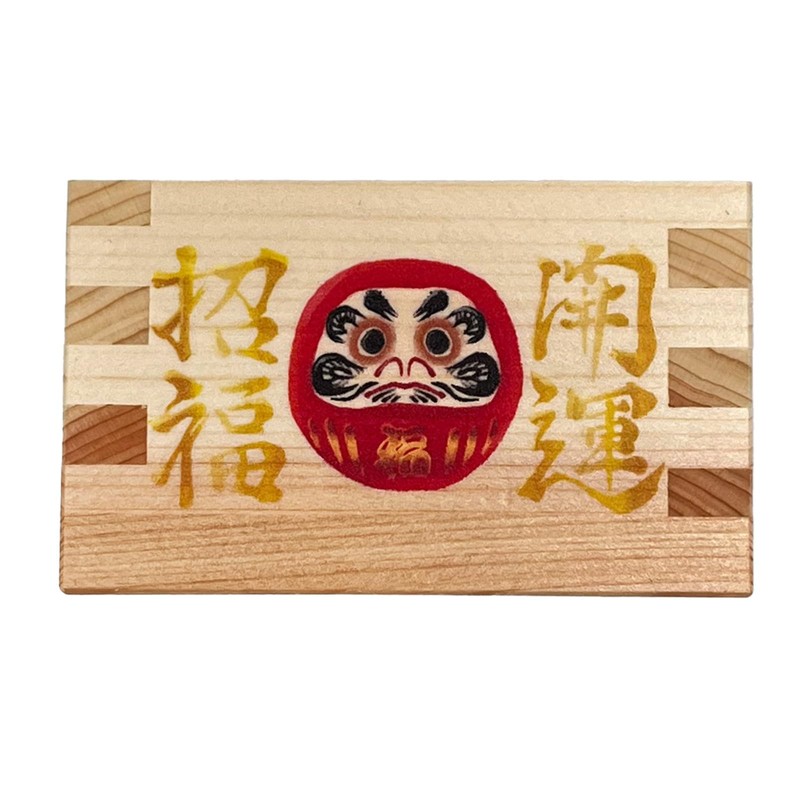TOKYO ART Japanese Wooden Sake Masu Cups (Set of 2) with Japanese Lucky Artwork, Square Sake Boxes - Crafted from Japanese high-grade cypress wood, Made in Japan (Red Daruma)