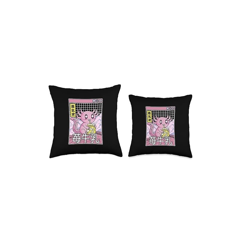 TOKYO WAVES Axolotl Banana Milk Kawaii Grid Vaporwave Aesthetic Anime Throw Pillow, 18x18, Multicolor