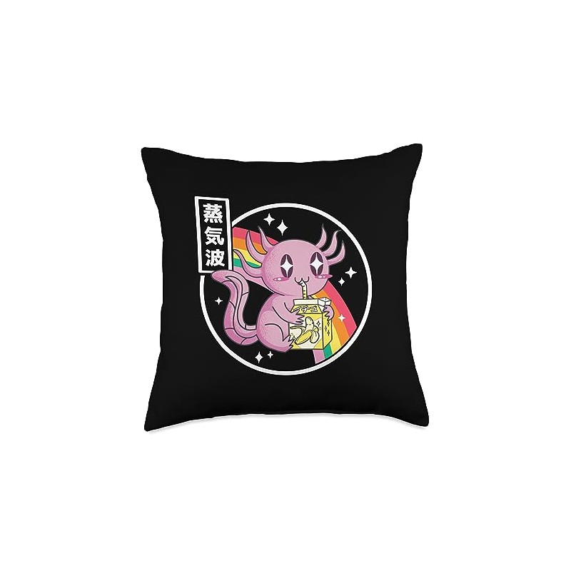 TOKYO WAVES Axolotl Banana Milk Kawaii Retro Rainbow Anime Throw Pillow, 18x1...