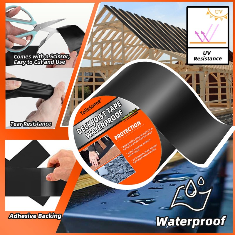 • 【Waterproof & Preservative Tape】The deck joist tape is made with butyl adhesive, creating a barrier for wood, joist, plastic, etc., helps prevent water damage, rot, and decay, and extends their lifespan. Perfect for indoor or outdoor use.
