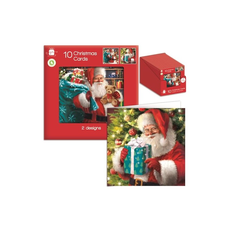 Tom Smith Giftmaker Pack 10 Square Christmas Cards 2 Festive Traditional Santa Claus Designs 14cm